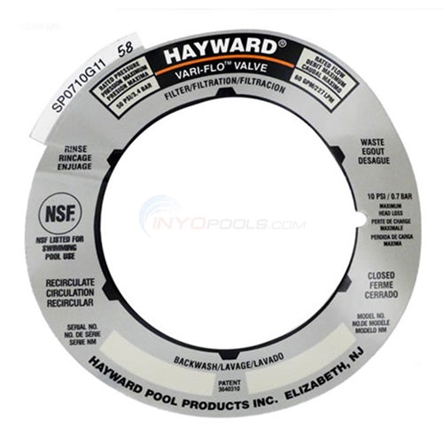 Hayward SPX0710G Valve Position Label For SP0710/SP0710X/SP0711/SP0712 1-1/2 Inch Vari-Flo(TM) Valves